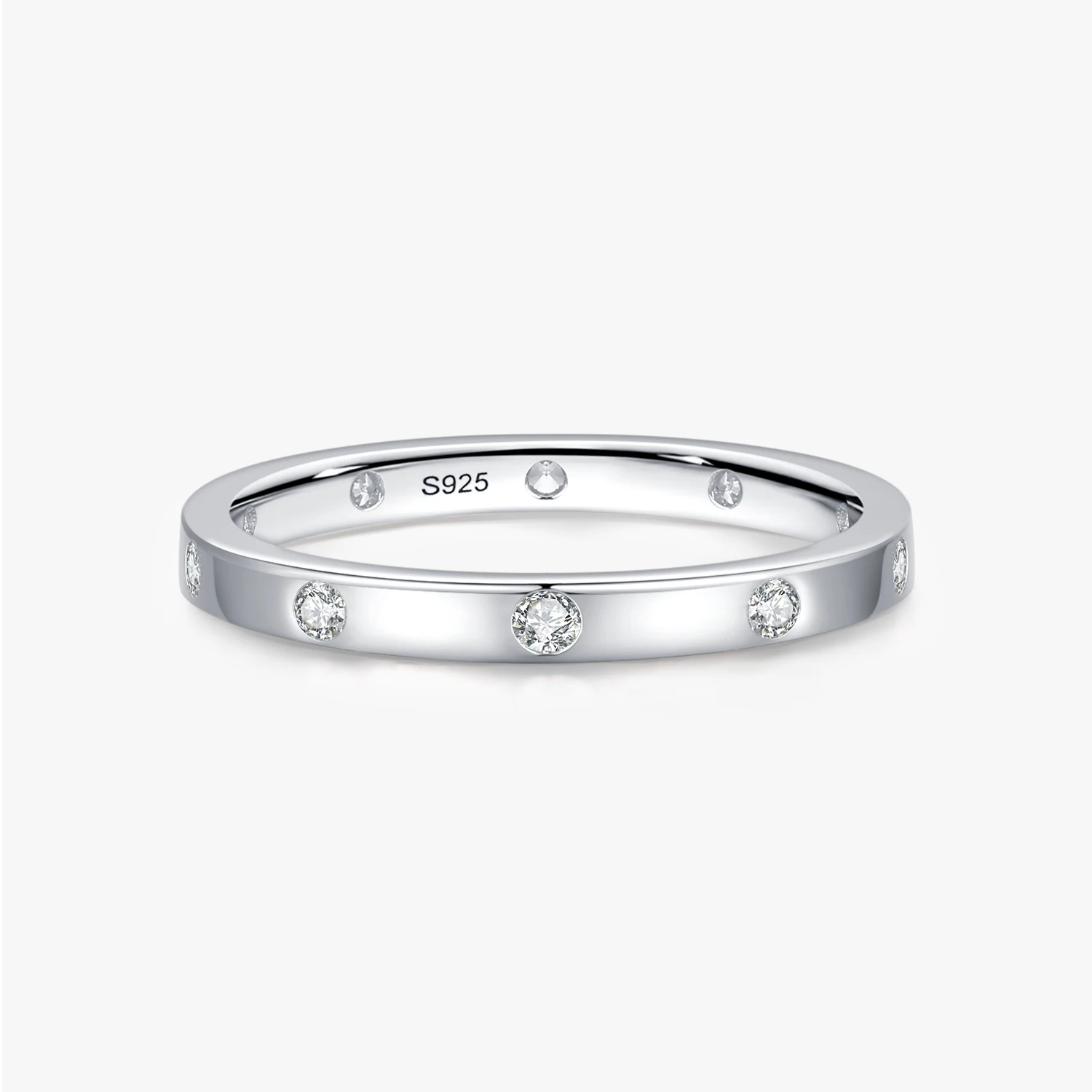 Entfernte, perfekte Diamanten, in Silber gefasst, wie die Punkte einer harmonischen Konstellation.