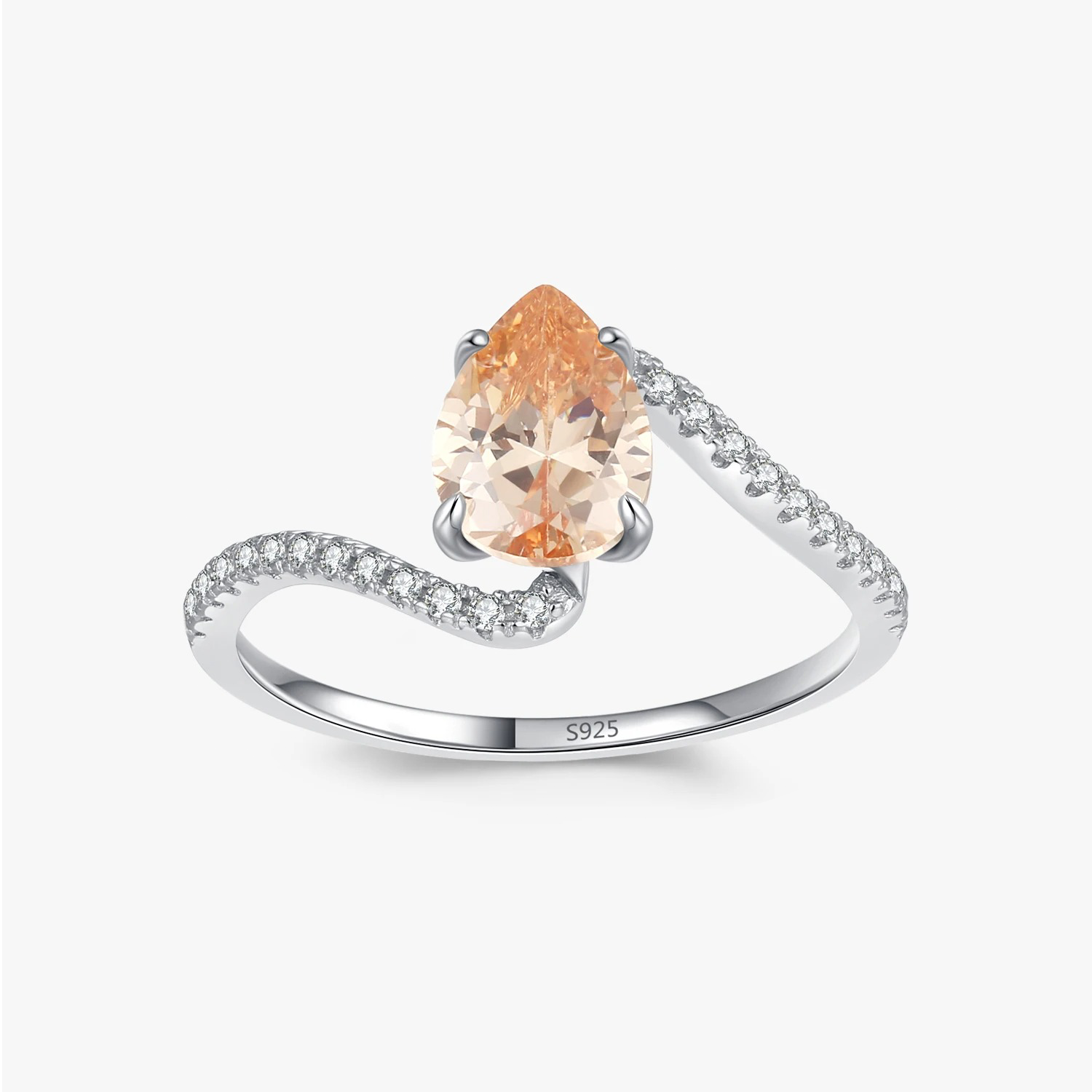 Ein birnenförmiger orangefarbener Stein glänzt im Herzen eines funkelnden Heiligenscheins und sorgt für einen extravaganten Ring voller Charakter.